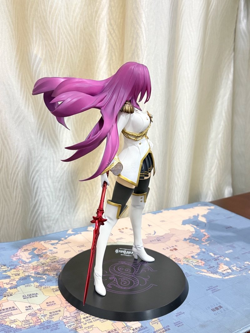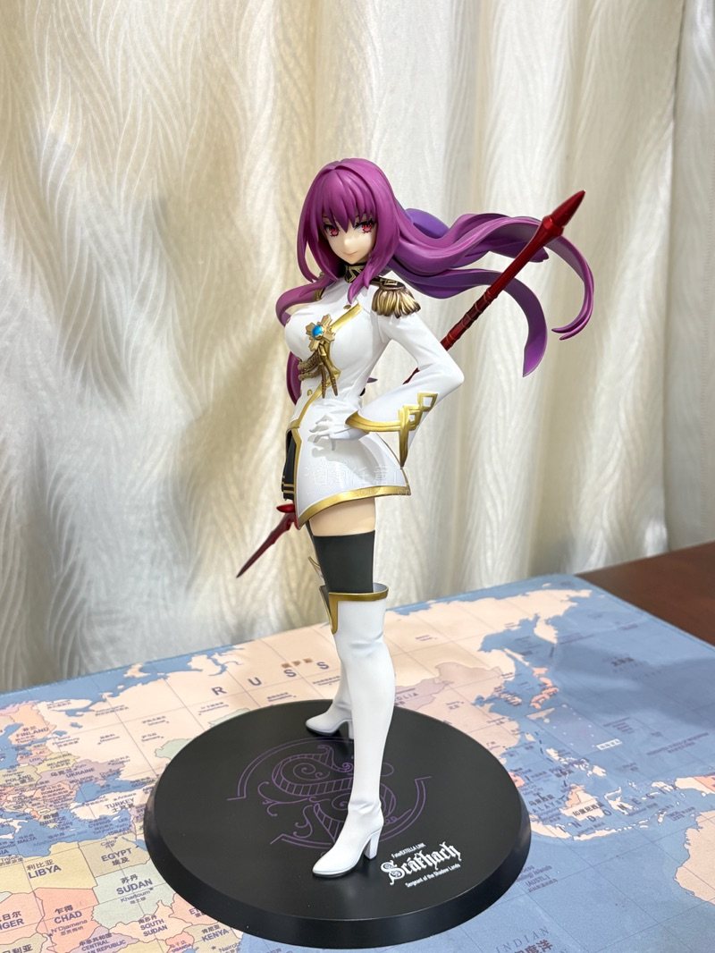 AMAKUNI斯卡哈,终得影之国女王之姿。手办气场凛然,面雕冷艳锐利,紫发飘逸如暗夜流光,眼神藏着不朽的孤傲与神性。魔境士官制服剪裁利落,金边纹饰精致考究,褶皱与线条尽显飒爽英姿;魔枪质感锐利,电镀涂装高级,细节还原度拉满。整体比例优雅挺拔,将师匠的强大与优雅完美融合,摆柜即是信仰。包装严实防震,物流稳妥,日淘正版品相完美。这尊斯卡哈,是跨越时光的王者风范,是Fate厨心中无可替代的典藏神作,一眼倾心,此生珍藏。