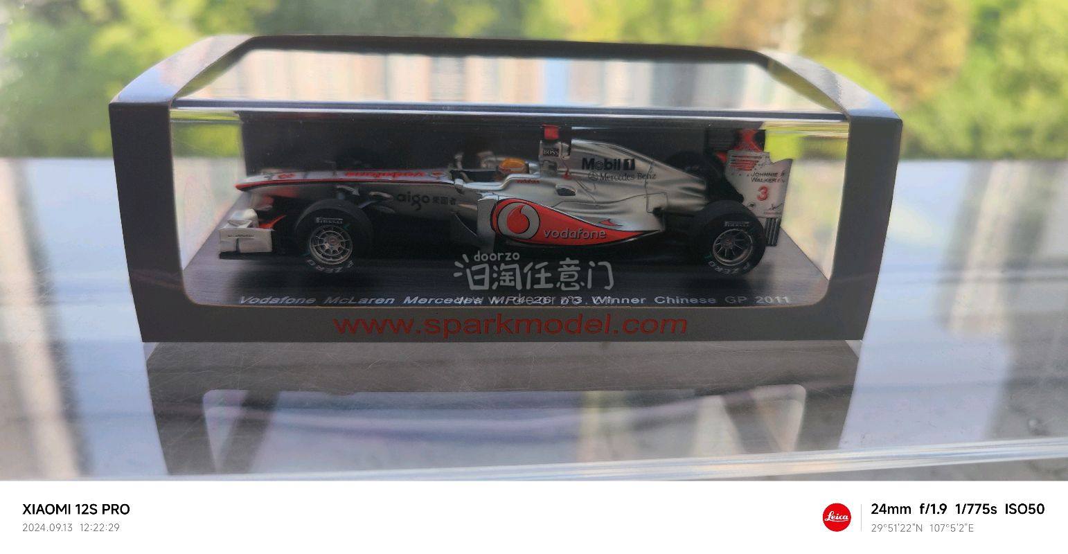 ?️ 挖煤姬日淘分享:McLaren MP4-26 2011中国站冠军 挖煤姬日淘入手Spark 1/43比例McLaren MP4-26模型,还原汉密尔顿2011年中国站夺冠时刻,质感与纪念意义兼具。 核心信息:车型为McLaren Mercedes MP4-26,车手刘易斯·汉密尔顿,车号3号,是2011年F1中国大奖赛冠军车,采用经典沃达丰银红涂装。 亮点解析:精准复刻Vodafone、Mobil 1、爱国者等赞助商标识,P Zero轮胎细节清晰,车身线条与空气动力学设计高度还原。作为汉密尔顿在迈凯伦时期的重要分站冠军,这台模型是F1收藏中极具代表性的经典之作。