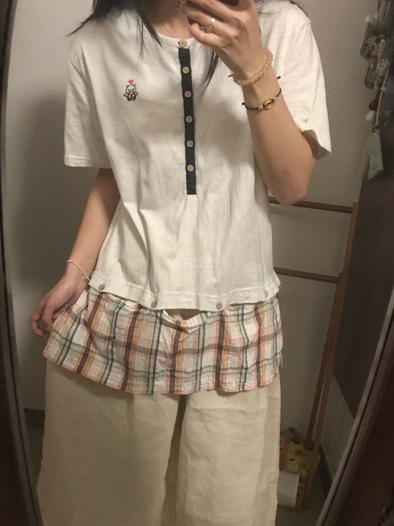ギンガムチェック トップス 森ガール ナチュラル M〜L