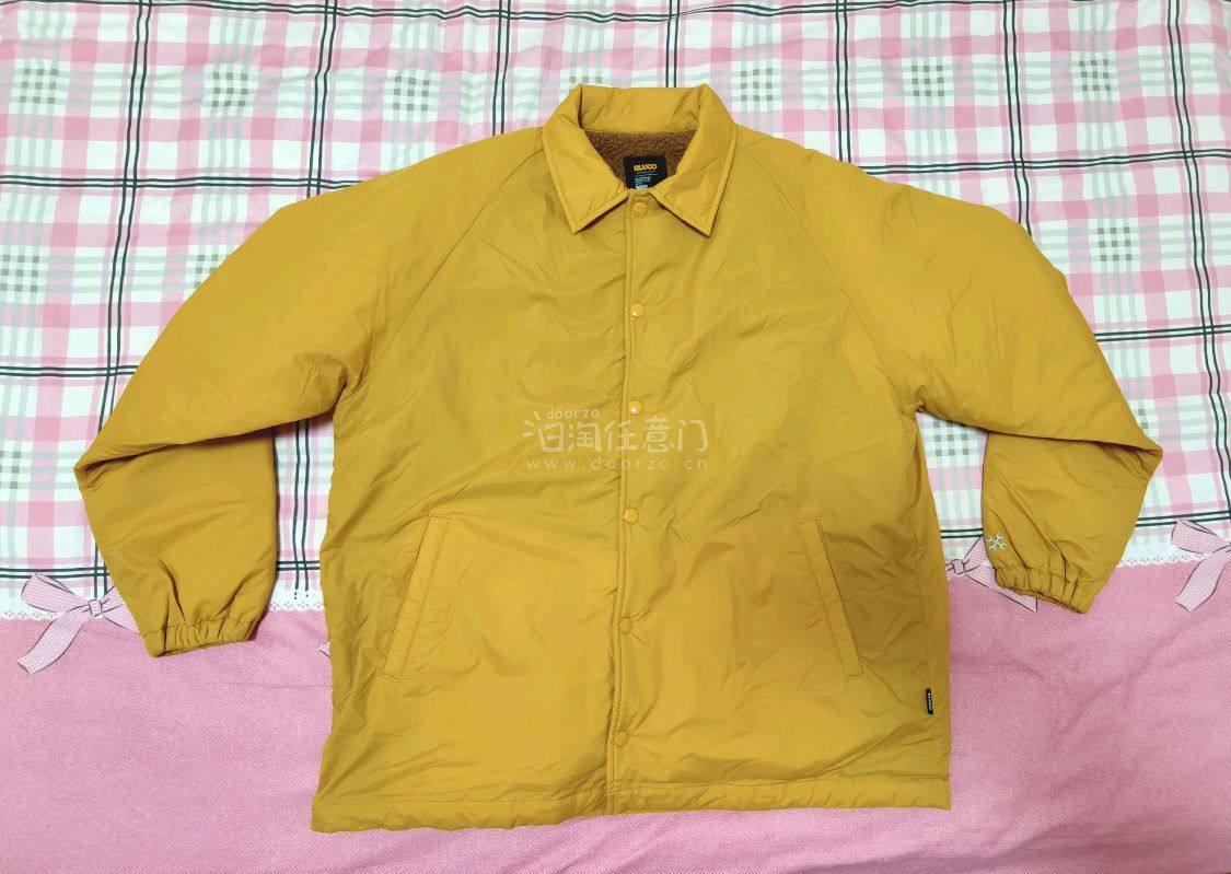 在挖煤姬淘到一件BLUCO抓绒加厚教练夹克,日本著名美式复古品牌,最好看的芥末黄,是tenderloin那件经典教练夹克的平替,但是无论材质、用料、舒适度均完爆里脊肉,后领有品牌名复古字体刺绣,精致的细节点缀。