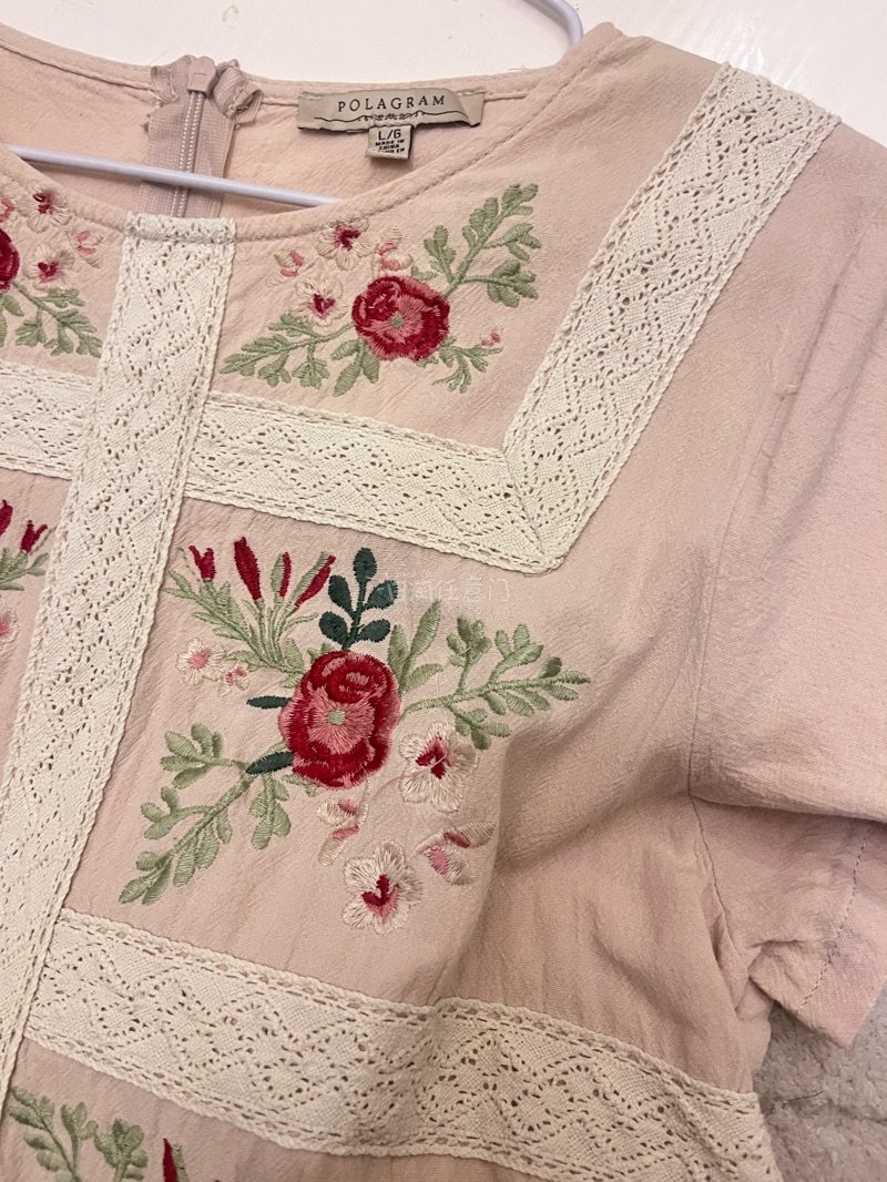 一点物!!!POLAGRAM 刺繍入りコットンワンピース L