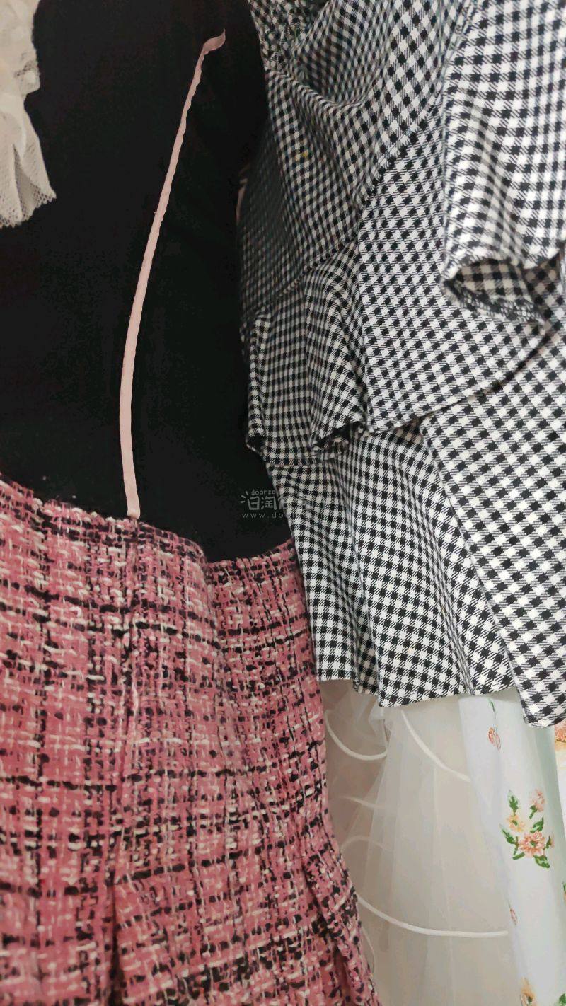 这次切的是jd的蔷薇柄的无袖连衣裙,以柔粉为底,饰有金绿交织的巴洛克风花卉纹样,正面蕾丝领口与腰间蝴蝶结增添精致感,背面简洁利落,整体华丽又不失少女感。