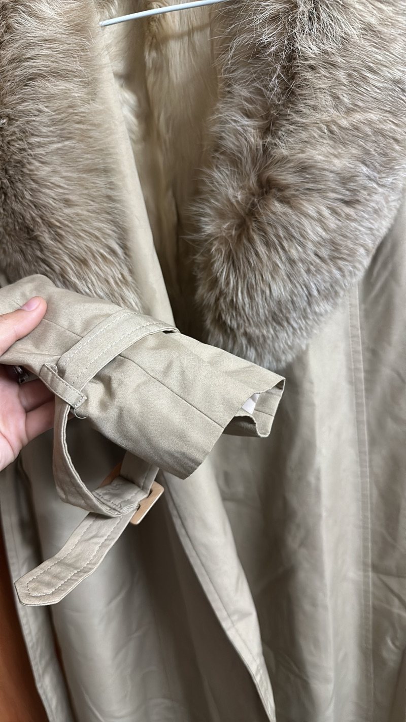 超高清的买家秀了~这款狐狸毛+羊羔毛内衬+纯棉面料+聚酯纤维内衬的风衣外套buff加满~没有对手,我很满意。