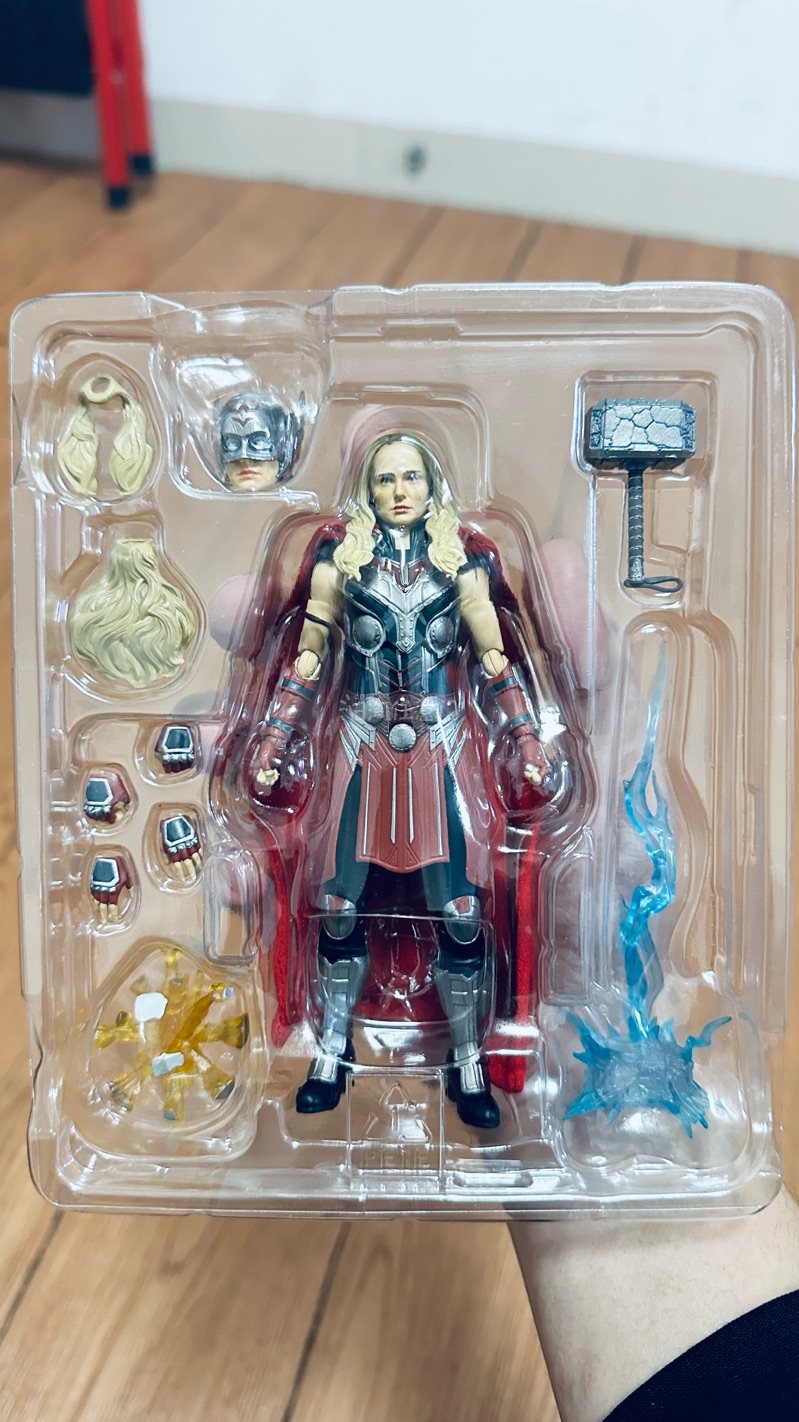 日淘入手的这两款SHF雷神手办太香了!索尔和简·福斯特的造型还原度超高,头雕细节到位,披风是布制的,质感和可动性都很棒。配件丰富,闪电特效件和武器替换件能摆出超多战斗场景,包装完好,物流也快,漫威粉必入!