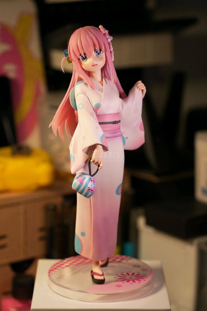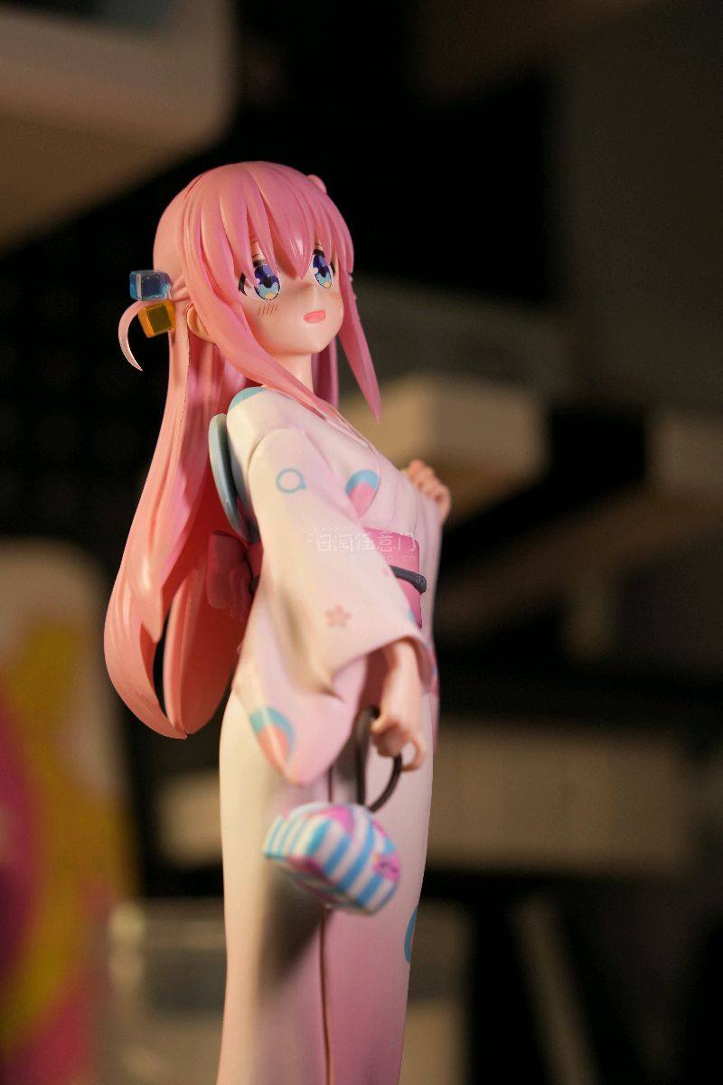 手办以夏日祭典为主题,角色身着粉色渐变浴衣,衣身点缀蓝粉圆点与樱花图案,腰间系有粉色腰带并配黑色细绳,整体设计充满夏日氛围。她手持蓝白条纹团子造型小包,包上饰有可爱猫脸图案,细节精致;发梢部分采用透明材质,增添轻盈感。底座为透明圆盘,印有粉色樱花与格纹图案,与整体风格协调统一。 作为一番赏原创设计,这款手办不仅还原了波奇酱在动画中的羞涩形象,更通过浴衣造型与配件细节,强化了“夏日祭典”的主题氛围,是《孤独摇滚!》粉丝收藏的高性价比之选。