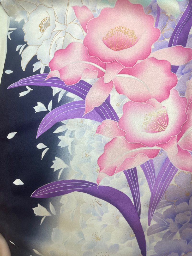 振袖 裄67 鮮やかな花の大胆な染め 暈し 正絹 着物 W-6604