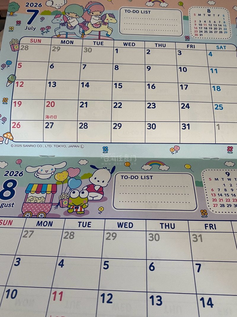 确认收货啦,这次买了好多小手办,其中要给大家分享的是三丽鸥的日历,薄薄一本A4纸大小,放在哪都不占空间不厚重,每一天都有小方格,可以简要写下要做事,我用了几年很好使,喜欢,希望2027年还能淘到。