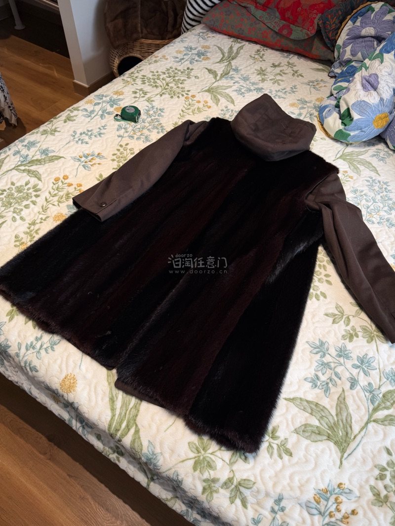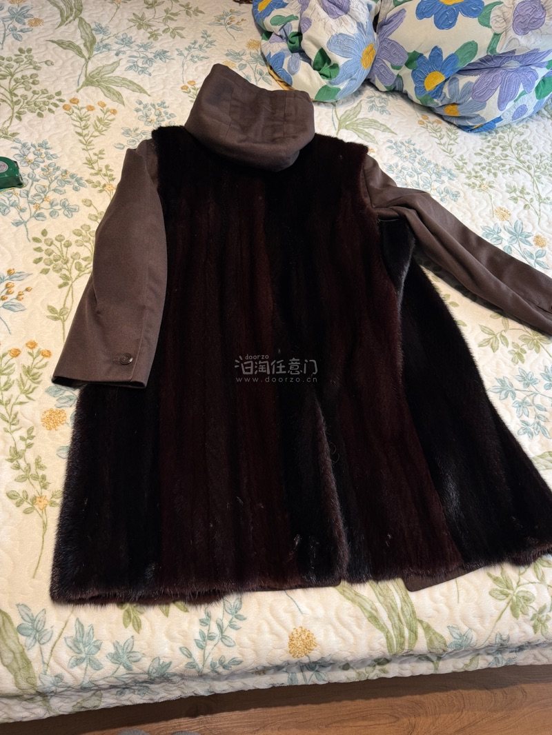 高級毛皮【 ¥1000~ / NINA RICCI / レアデザイン 】 ◆美品 ◆ミンク×生地 ◆ロング丈 93cm ◆ダークブラウン×黒近DB ◆大き目 ◆D820