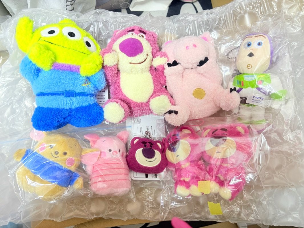 来啦来啦!毛孩子开箱啦!超喜欢这次的中小号毛娃娃!卷卷毛的!还有miji口金草莓熊零钱包!胖嘟嘟的小豆和小猪!都太可爱啦!依旧是最稳妥的竹蜻蜓呀!期待下一次开箱!!