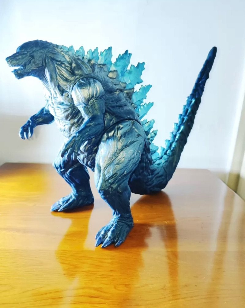 这款行星哥斯拉软胶质感超绝!渐变蓝背棘晶莹剔透,肌肉线条充满压迫感,金属光泽涂装高级感拉满,姿态霸气十足,是怪兽收藏里的视觉焦点!