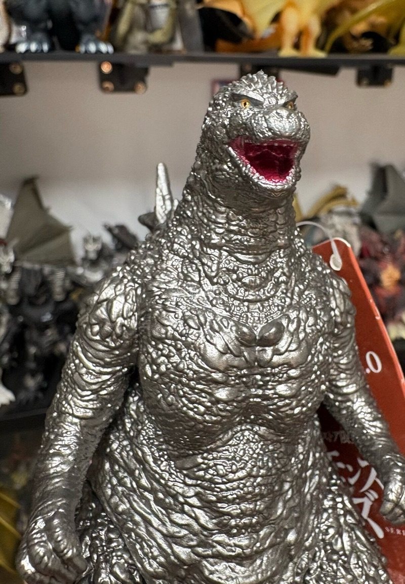 这款金属银限定哥斯拉-1.0软胶质感拉满!通体银漆细腻高级,皮肤纹理与背棘刻画凌厉,光泽感十足,是极具收藏价值的限定款!