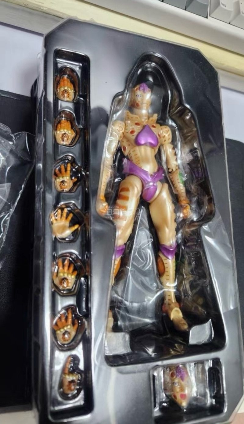 【挖煤姬海淘:黄金体验镇魂曲】这款普通版实物依旧能打!金色成型色涂装均匀平整,肌肉线条与面部表情刻画锐利。关节松紧度调校出色,能稳稳摆出各种战斗姿态,把玩手感很扎实。附属的多对替换手型与地台设计实用,整体造型还原度令人满意。挖煤姬的入库拍照服务让我提前确认了涂装无瑕疵,加固包装让外盒完美无损。EMS运输15天顺利到手,作为JOJO收藏的经典款,入手不亏!