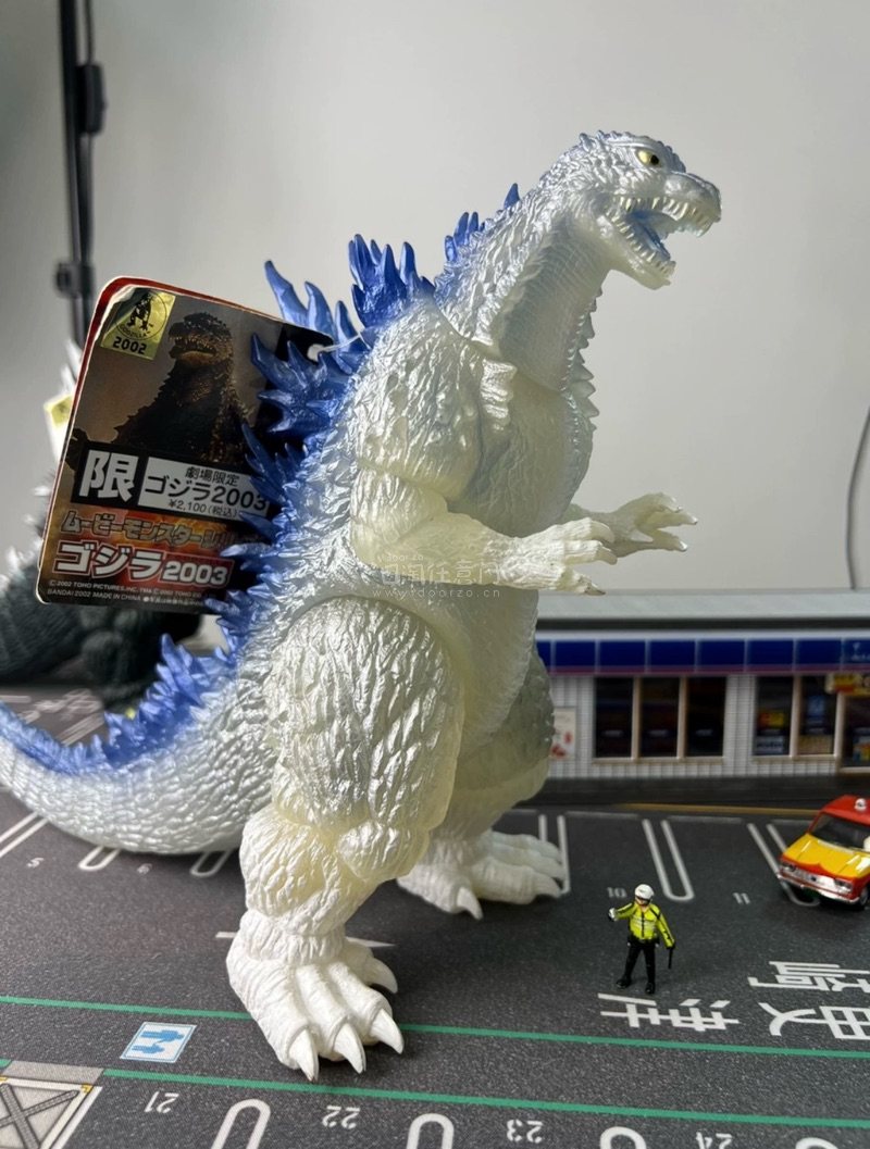 半透白鳞裹挟着冰蓝背鳍,哥斯拉2003剧场限定版伫立街头,通透质感与锐利棘刺,将稀有收藏的独特魅力尽数呈现。