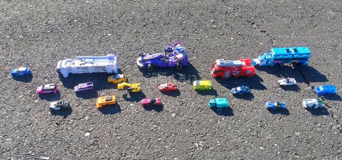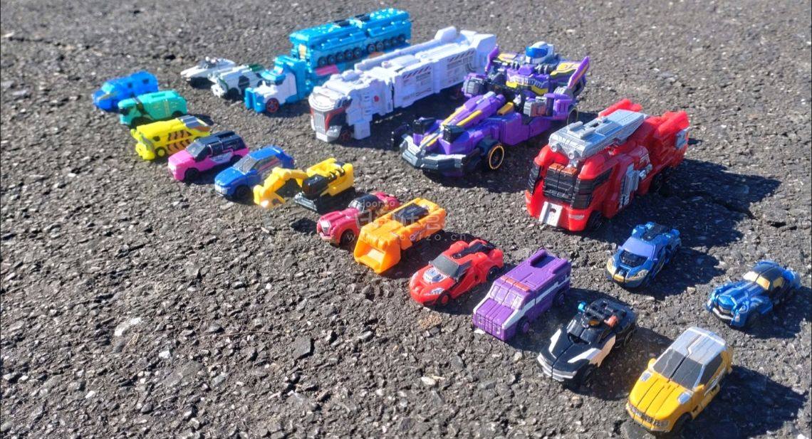 买了这么多机器人放在地上拍照,简直像在地上赛跑一样,特别特别的帅气,我特别喜欢这款机器人,而且它们还能合体变形,有意思