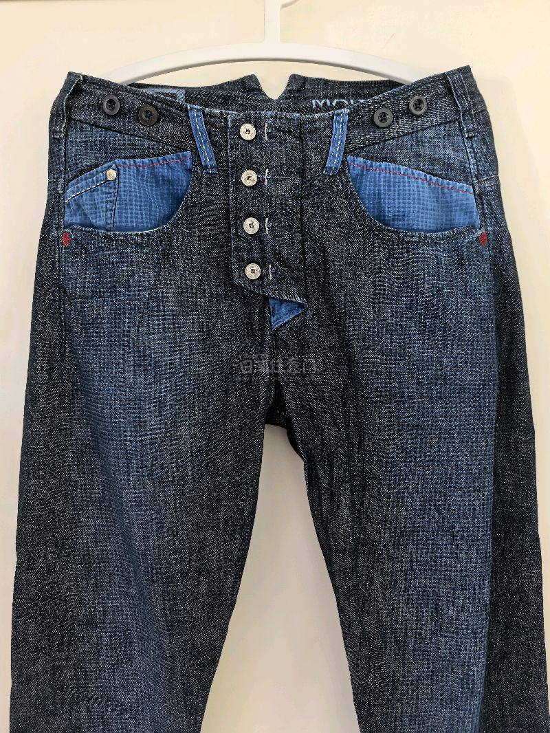 RRL美产黑色风暴骑士夹克上身很出效果,水洗做旧出色,版型也很合适,左胸和后腰有一点小瑕疵还好不算严重,总体也算品相不错的夹克了,很喜欢。MFG裤子门襟设计得有意思,后面还是巴黎扣,面料也是很柔软舒适,品相很好,性价比不错的。完美的两件