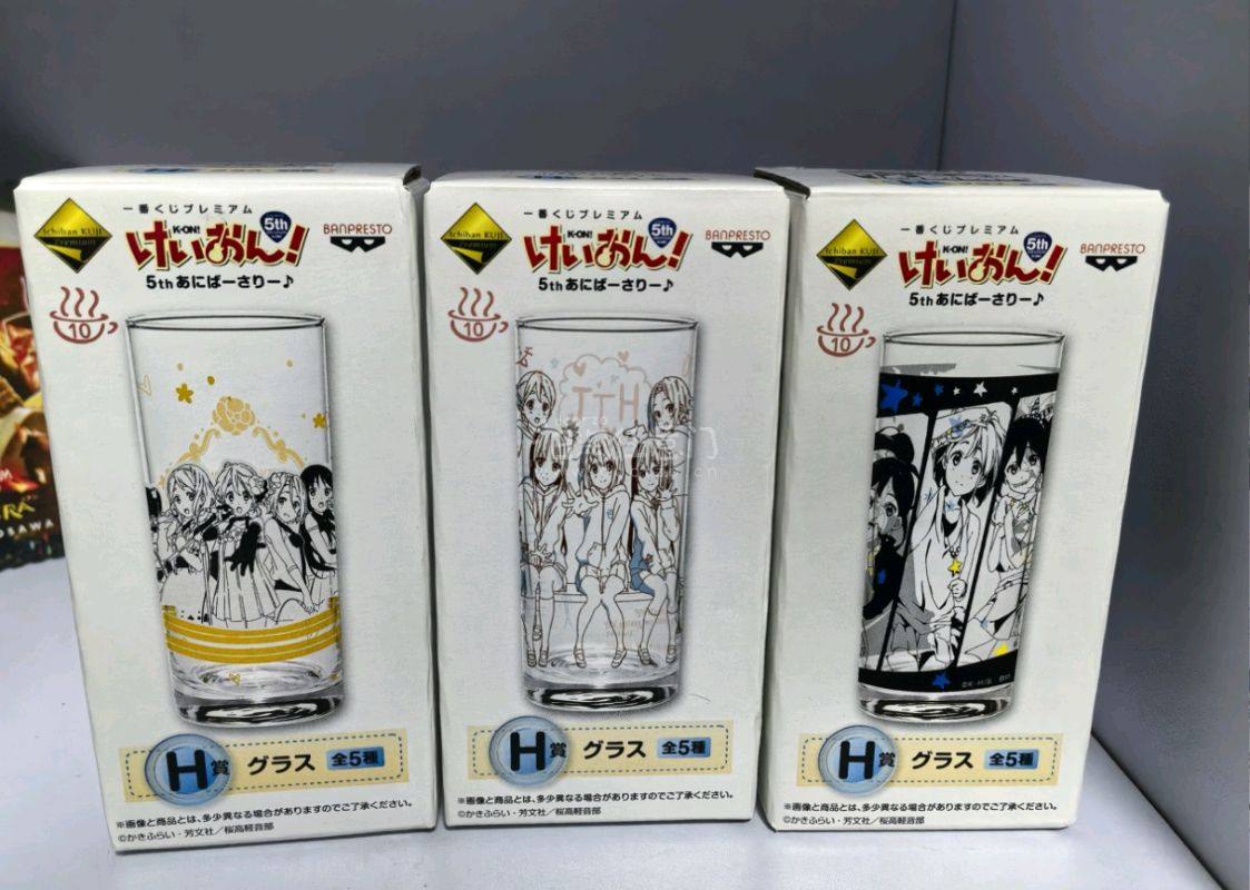 希少品☆ けいおん!「放課後ティータイム HTT 5th あにばーさりー♪」イラスト グラス 3種類 まとめて 京アニ かきふらい アニメ グッズ