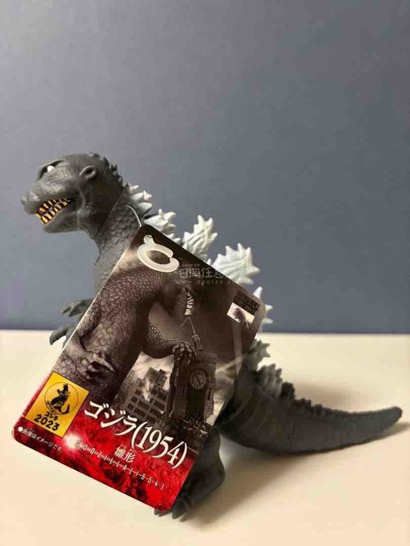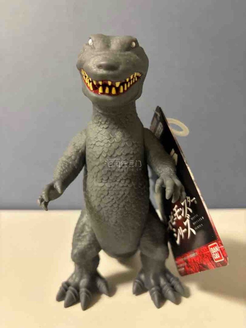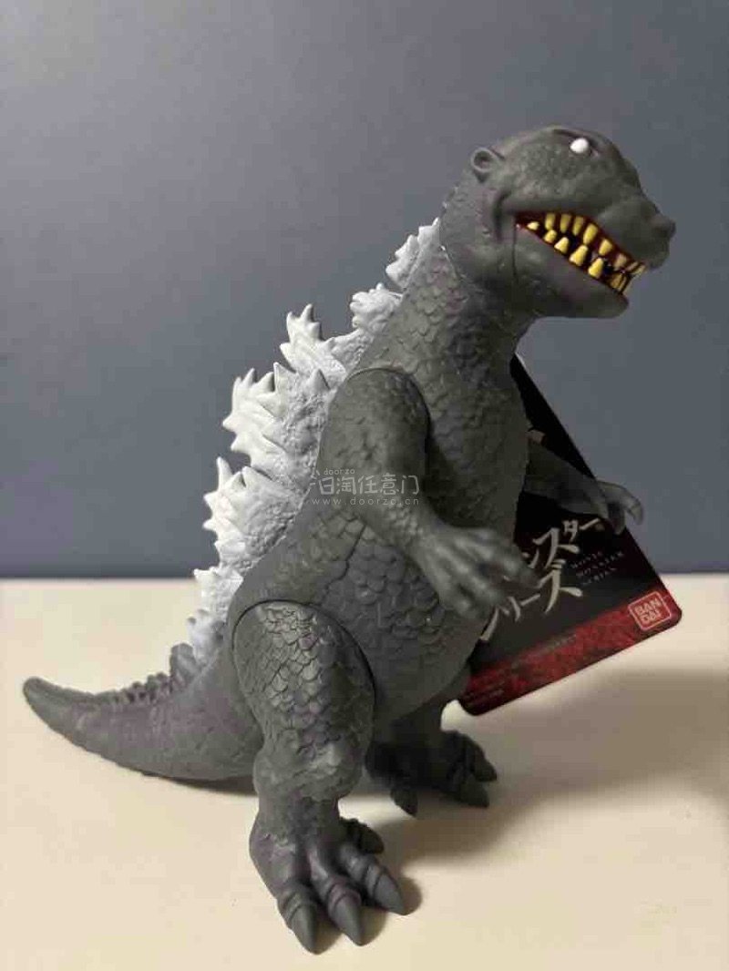 这是1954版哥斯拉雏形款软胶,还原了初代经典造型,灰黑躯体搭配白色背棘,皮肤纹理与利齿细节刻画到位,复古感与纪念意义兼具,是系列原点的代表性周边。