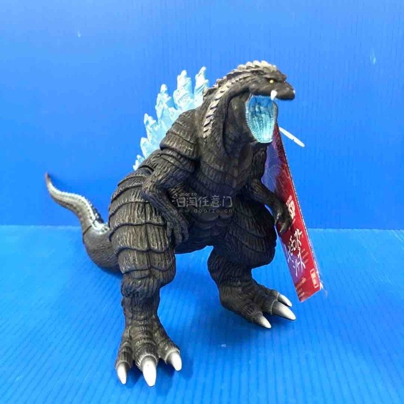 这是《哥斯拉:奇点》蓝光完全限定版附属的哥斯拉软胶,黑身蓝背棘造型还原动画设定,肌肉纹理与爪部细节清晰,限定套装收藏价值突出。