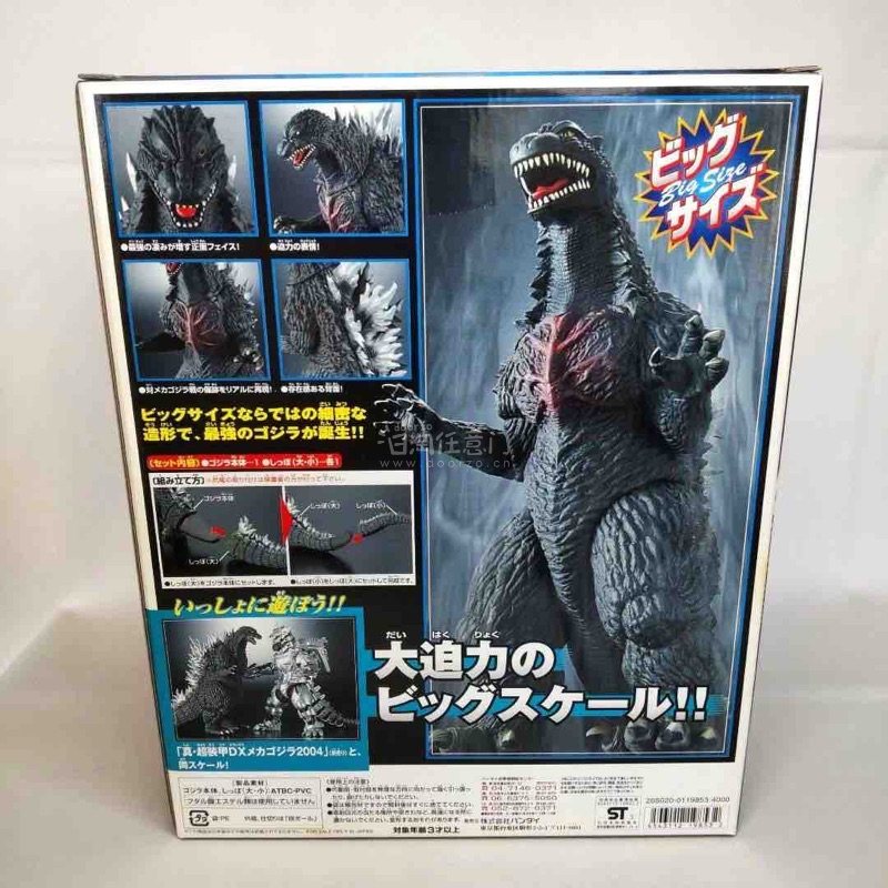 这款DX哥斯拉2004软胶全高约280mm,大尺寸带来十足压迫感,红痕胸甲与银白背鳍精准还原终战造型,是系列中极具分量的收藏级单品。