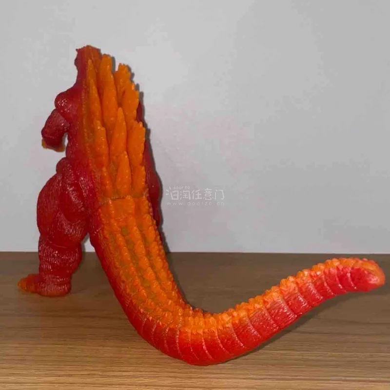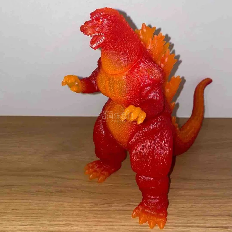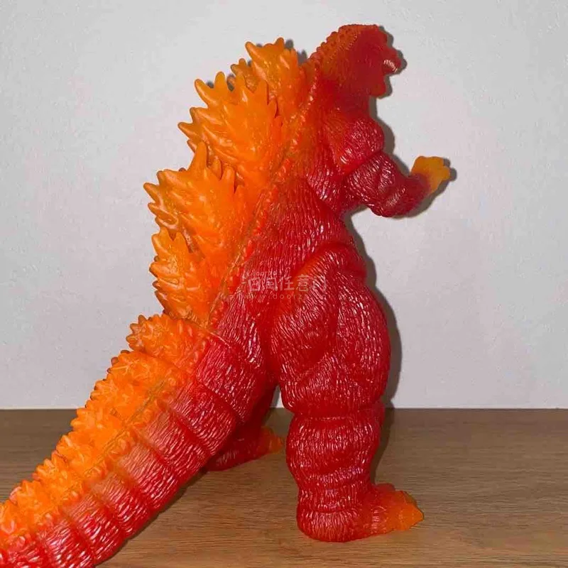 这款红莲哥斯拉软胶,通体红橙渐变的半透质感极具视觉冲击力,完美还原了核能量暴走时的炽热状态。背鳍与身体过渡自然,全身纹理刻画粗犷原始,火焰般的色彩在光线下通透亮眼,尽显王者野性,是收藏中极具特色的经典形态。
