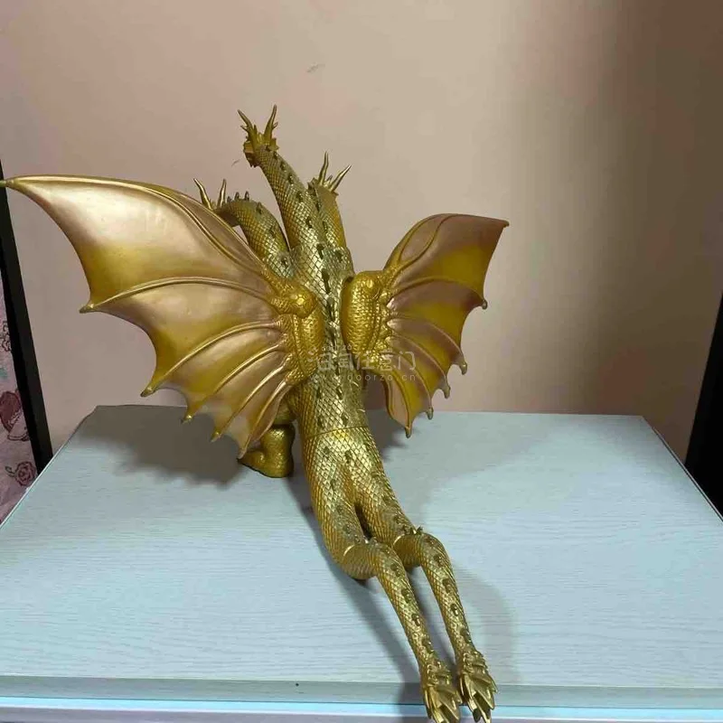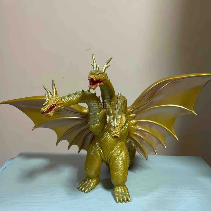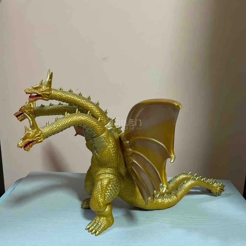 这是王者基多拉经典款软胶,通体华贵鎏金,鳞片纹理立体精致。三头龙首气势磅礴,翅膀张合自然,红口白牙细节到位,尽显怪兽之王的霸气与收藏价值。