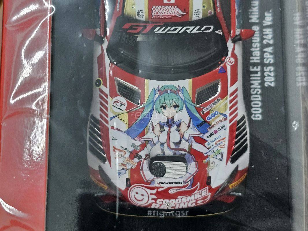 在挖煤姬淘到的1:43初音未来AMG SPA2025痛车模型太惊喜了!包装严实,车身漆面细腻,初音蓝绿涂装还原度满分,拉花细节清晰。GSR联名款品质在线,底座稳固有质感。物流迅速,价格合理。二次元与赛车迷的双重福音,收藏展示都合适,强烈推荐!