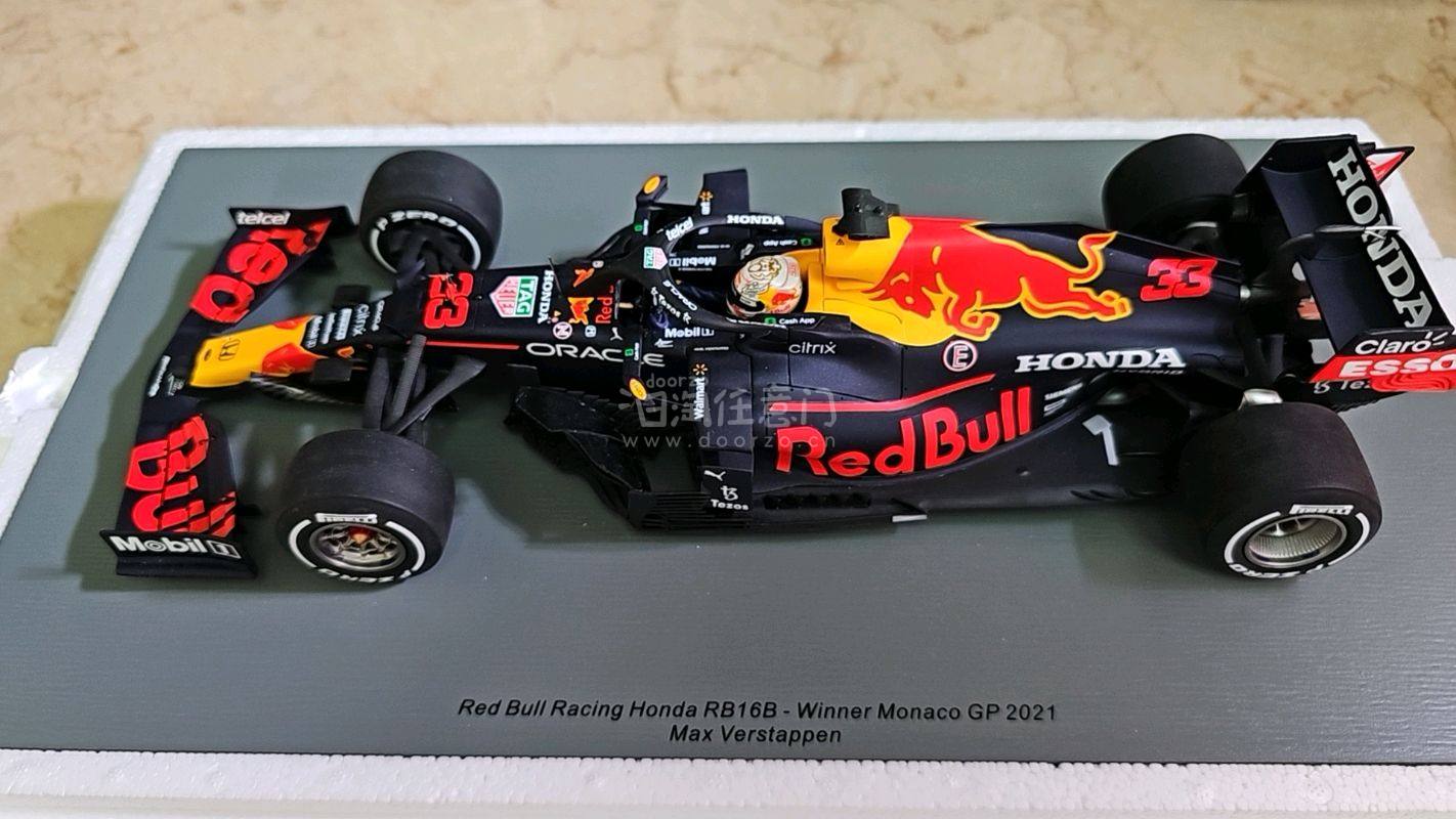 在挖煤姬入手的1:18红牛RB16B摩纳哥站维斯塔潘冠军涂装模型太棒了!包装严实无损,车身漆面光滑,红牛蓝红配色还原度超高,细节刻画精致。底座质感好,展示效果一流。物流给力,价格公道。F1粉丝和模型收藏者必入,五星好评推荐!