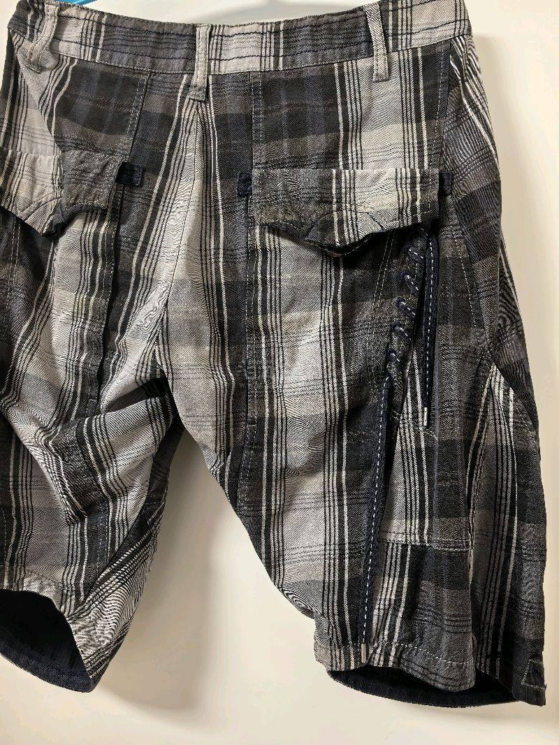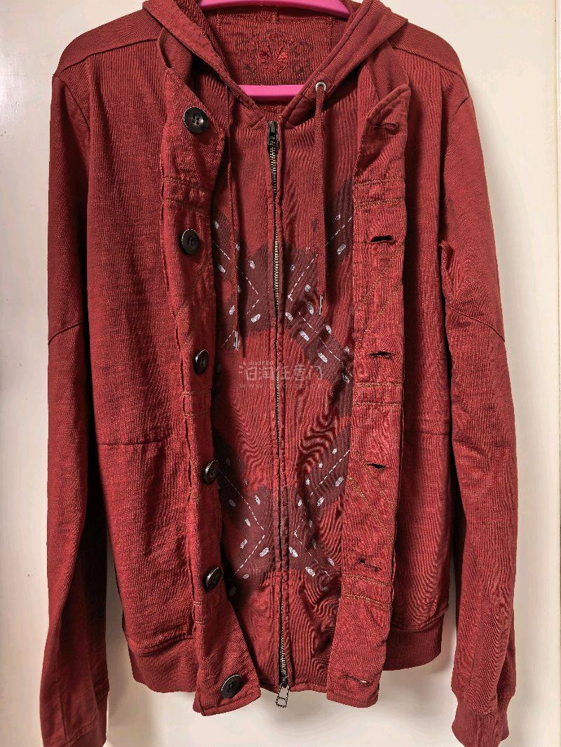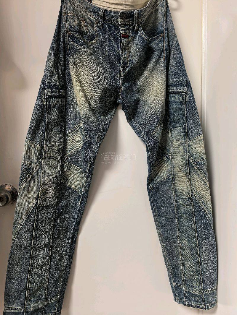 4件MFG的衣裤,件件都喜欢,两条短裤一简一繁,设计得天马行空。长款拼接牛仔裤版型太喜欢了,重度水洗质感很好,就是有点霉味,已经清洗。红色水洗连帽卫衣开身处设计得太有意思了,有点宫廷味道,不错不错。