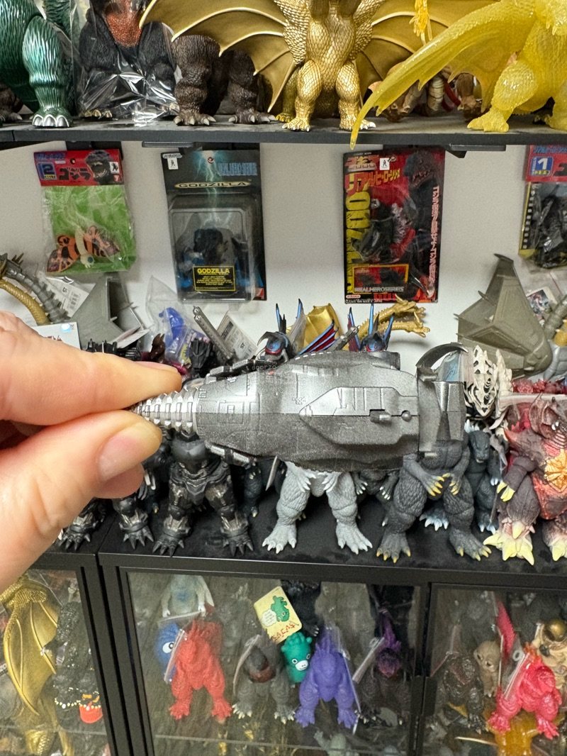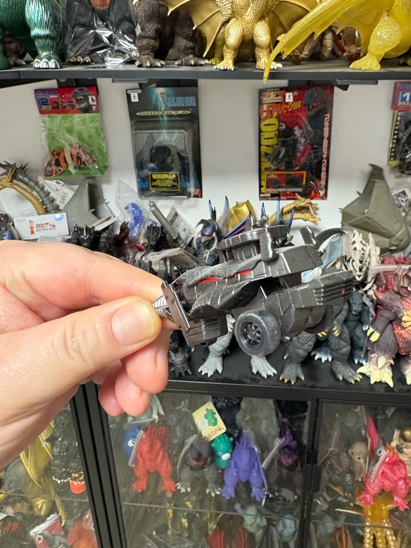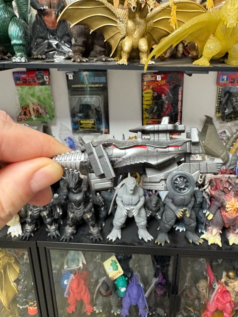 这款特摄载具模型,金属灰涂装质感厚重,钻头与装甲细节刻画精密,机械感拉满,搭配怪兽手办场景感十足,收藏与把玩都很合适。