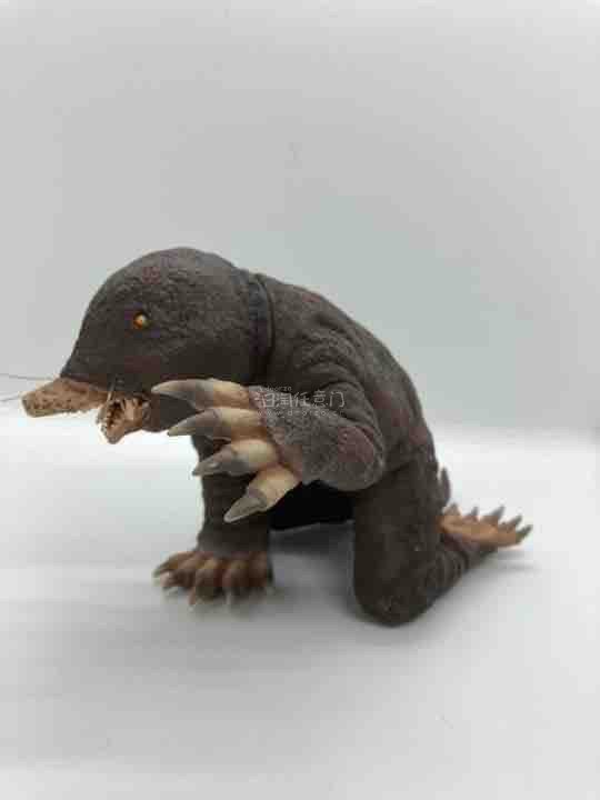 这只蒙古拉(鼹鼠怪兽)手办质感太写实了,深棕磨砂皮肤颗粒感拉满,尖爪、利齿和触须细节都刻画得很细腻,蹲伏姿态透着凶悍,复古怪兽的野性味儿十足。