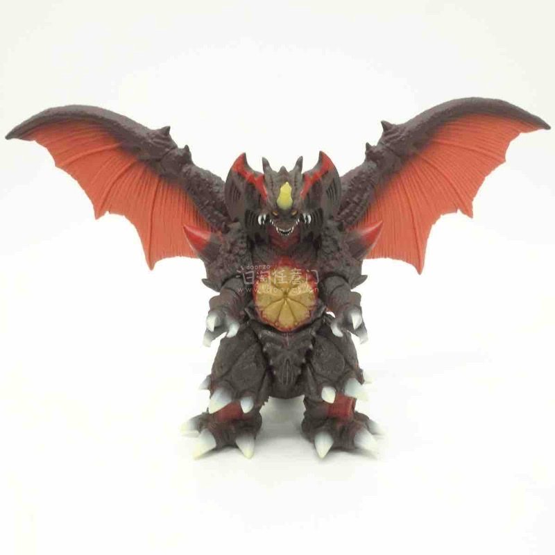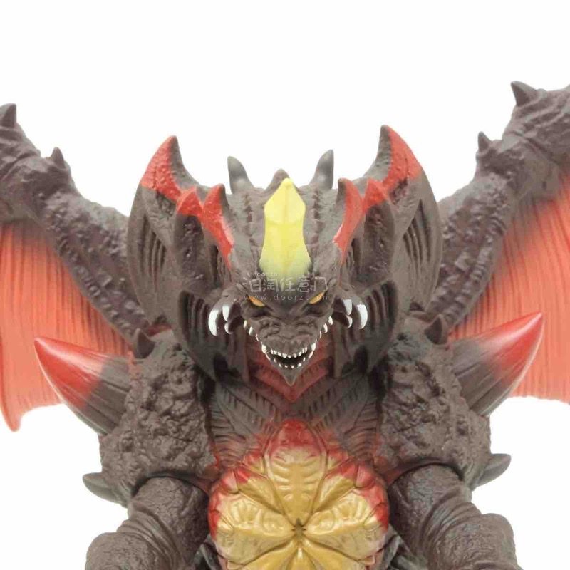 这只戴斯特洛伊亚手办压迫感拉满,深棕熔岩质感的躯体搭配赤红蝠翼,胸口放射状橙黄核心与头部尖角利齿的设计极具辨识度,多层棘甲与渐变白爪的细节刻画细腻,完美还原了怪兽的凶戾与毁灭感。