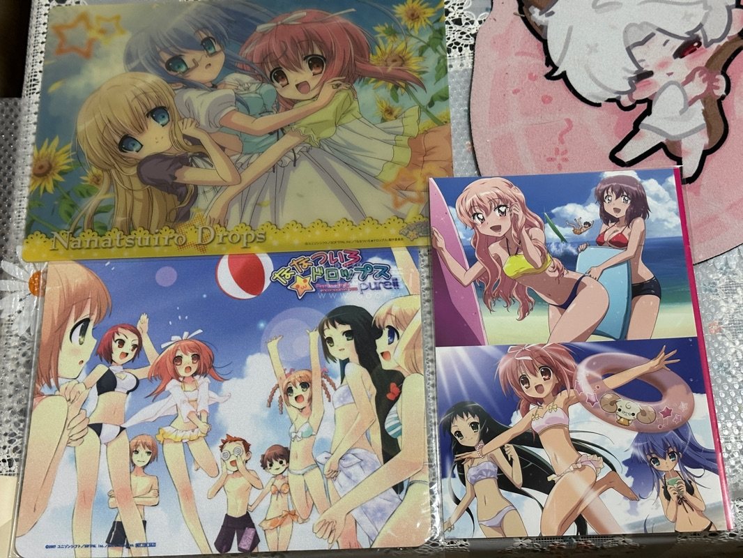 这次切到了一堆种村有菜的周边 神风怪盗贞德文件夹 满月贴纸樱姬清洁布和卡片等 这个画风真的超级华丽喜欢ヾ(*ΦωΦ)ツ 还有七色星露 垫板,鼠标垫和泳装明信片 还切到了一张姬子可爱明信片和收纳袋 简直不要太惊喜~