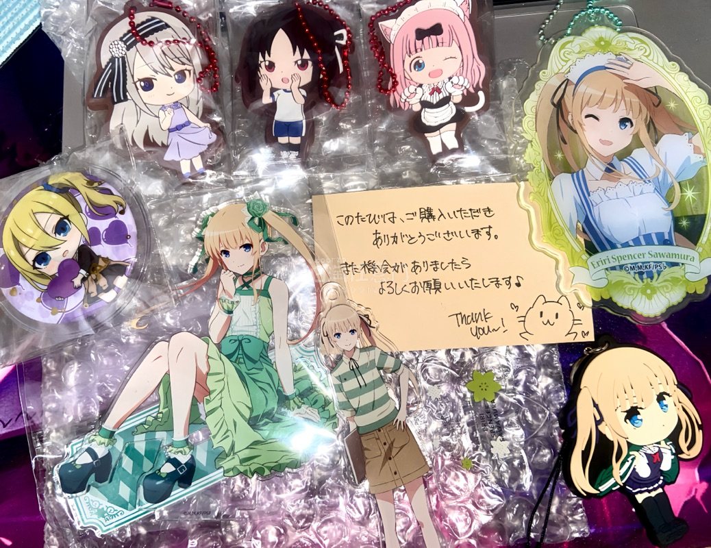 特别开心今天收到了过年淘的一些宝贝 包装还是一如既往的认真啊 卖家都特别特别好 还给我写了小纸条 很感动啊 非常满意 看到这些谷子感觉生活又很有动力了!英梨梨好美 我永远喜欢英梨梨!英梨梨天下第一!!!!