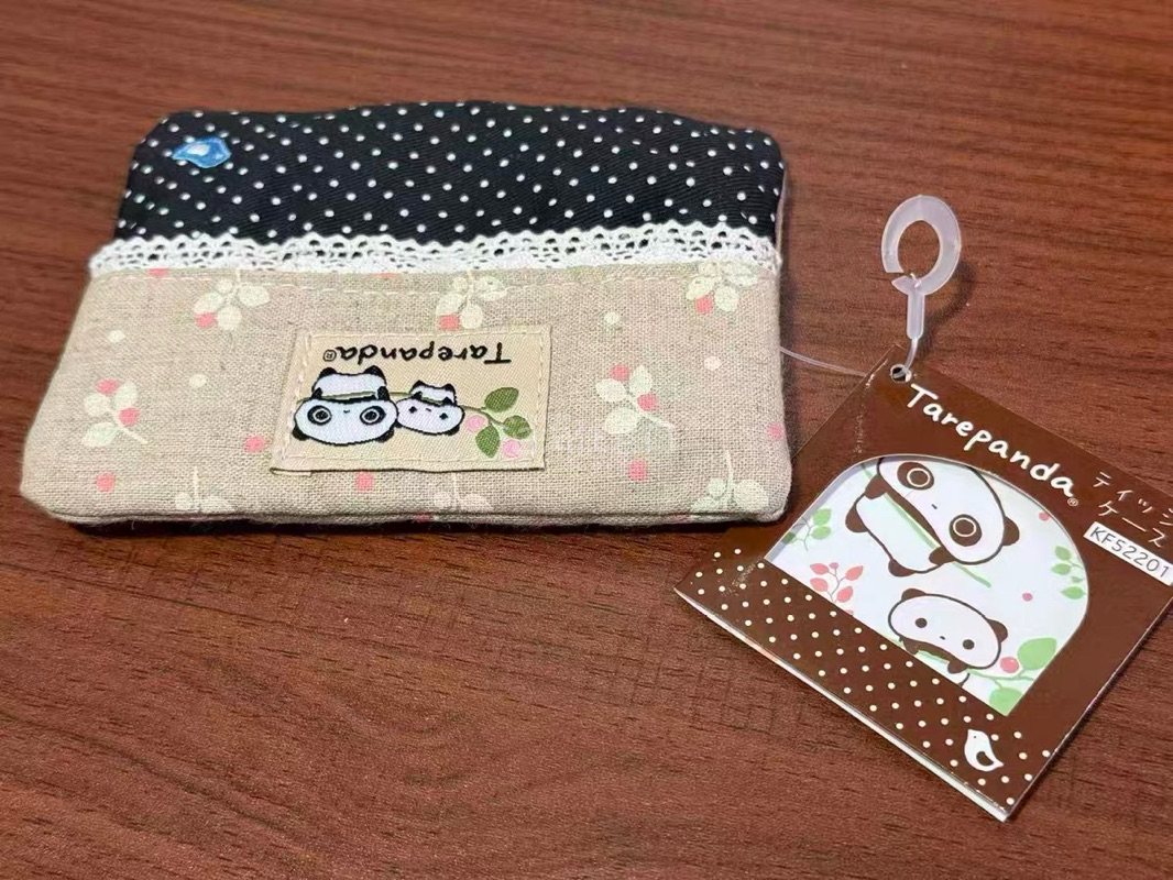 这次入手的Tarepanda趴趴熊猫布艺卡包太可爱了!拼接波点与碎花面料,搭配蕾丝花边和刺绣熊猫贴布,复古又治愈。做工精细,容量实用,能放卡片和零钱,作为SAN-X经典IP周边,颜值与实用性并存,购物体验超满意!