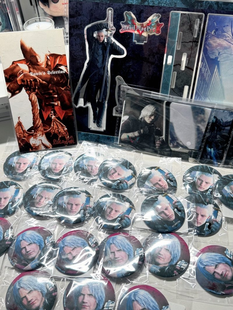 这次可以是我切回来总价以及数量最多的一次了哈哈,为卡普空鬼泣抽赏奉献了好多。这次也是平安到达! 箱子有帮我额外填充泡泡,运回来吧唧和立牌也没有压到,好价吃到一张但丁的cd,还有些兄弟俩的吧唧,平铺开很有满足感了,喜欢