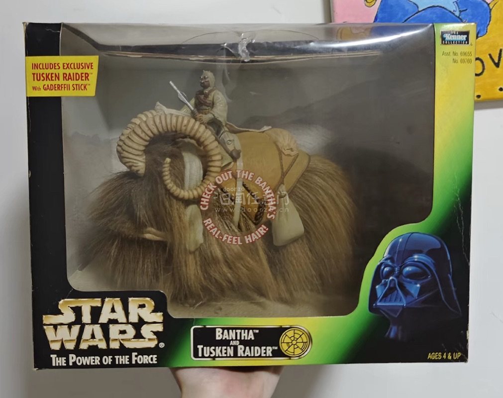 ? 班萨与塔斯肯袭击者 这只班萨真的太绝了!真实植毛质感拉满,蓬松的棕毛在沙漠背景里氛围感直接拉满,骑乘的塔斯肯袭击者手持加德菲棍,面罩和服饰细节都完美还原,仿佛下一秒就要在塔图因沙丘里展开劫掠。老玩具的扎实做工,现在摸起来还是沉甸甸的情怀感! ? 赫特人贾巴 贾巴宫殿的核心反派来了!这个贾巴人偶把臃肿慵懒的神态拿捏得死死的,嘴边的口水细节都做出来了,还附带了他的专属侍从和通讯器配件,往贾巴宫殿场景里一放,瞬间就能脑补出他在王座上作威作福的样子,还原度直接封神! 感谢挖煤姬!!!