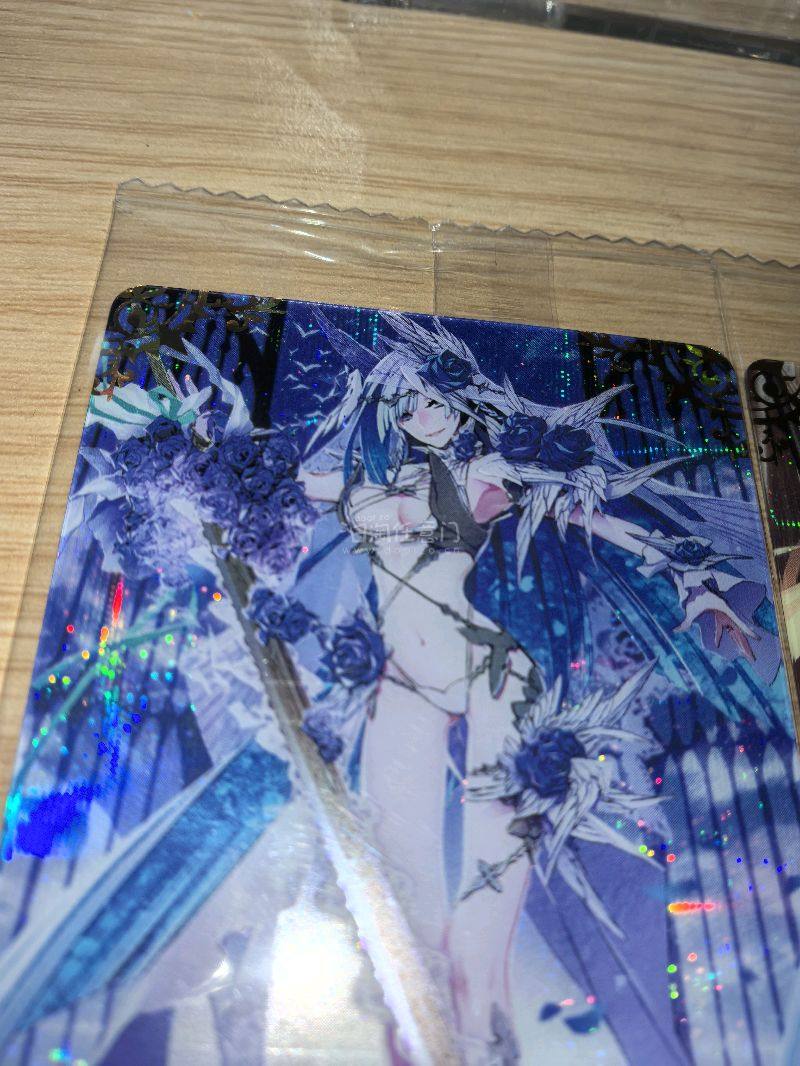 很喜欢FGO食玩卡特别弹的这个镭射底,觉得比普通底好看。还在骏河屋切到了想要很久的透卡,比想象中大,非常美丽,希望下次还能切到。