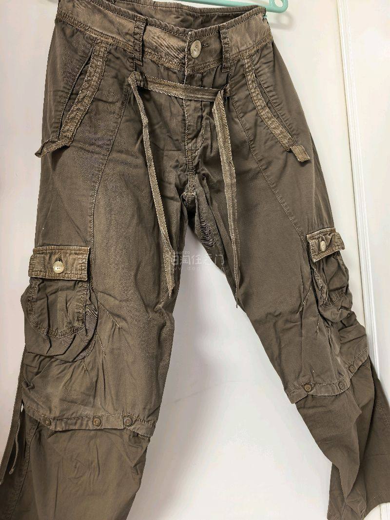 两条经典的MFG裤子,蓝紫色的门襟处设计得太前卫了,几何型的拼接设计很前卫高级,面料是丝绵的,轻薄舒适。好喜欢。另外一条是走秀款的多袋工装裤,可拆分成短裤的设计很实用,百搭款日常穿着随意搭配,两件都不错