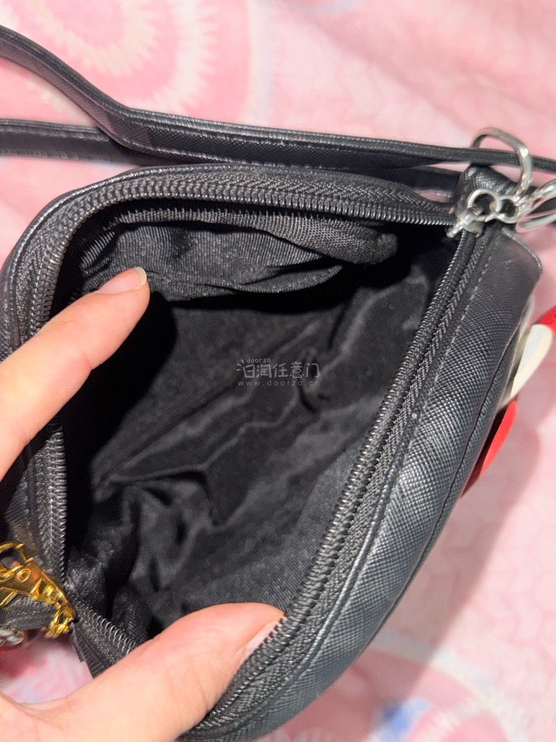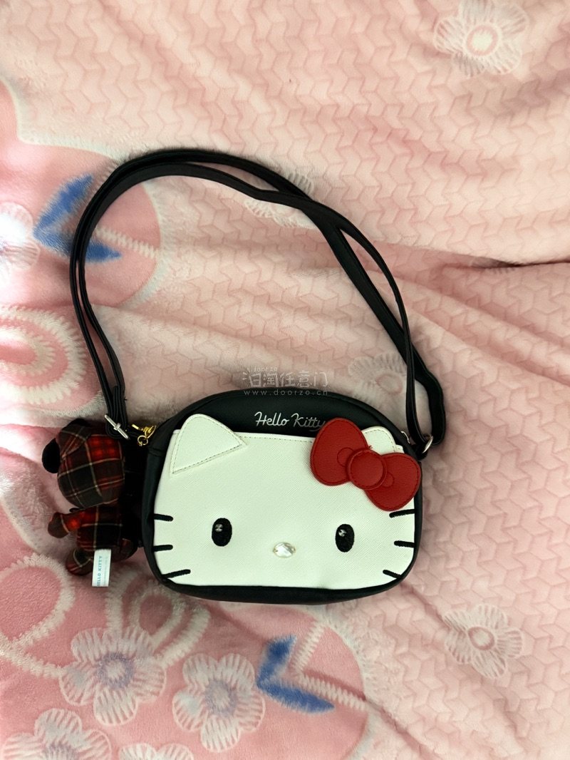 真的被这款Hello Kitty斜挎包狠狠拿捏了!经典的黑白红配色软萌又百搭,包身立体的凯蒂猫造型还原度超高,红色蝴蝶结精致又可爱,颜值直接拉满。皮质手感细腻顺滑,做工走线工整,没有多余线头,内里空间也很够用,日常装手机、口红、钥匙、纸巾完全没问题,背带长度可调节,单肩斜挎都可以。