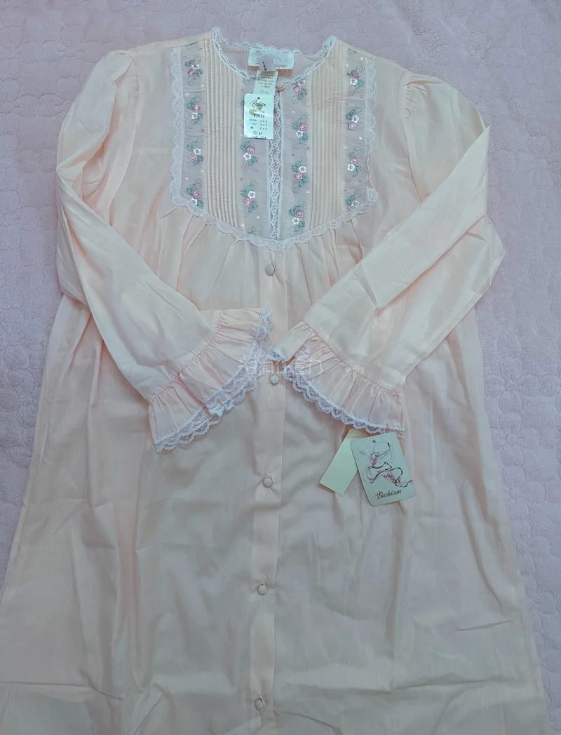 这次在煤炉挖到了全新带吊牌的Barbizon复古睡裙,真的太惊喜了!奶杏色温柔又显气质,领口和袖口的蕾丝花边精致又少女,胸前风琴褶搭配粉绿小碎花刺绣,细节感拉满。面料轻薄透气,软软糯糯的贴肤感超舒服,夏天穿也不会闷。 挖煤姬的合单物流体验也很棒,包装严实没有破损!