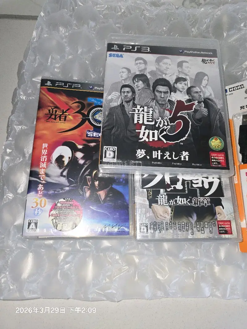 psp 如龙黑豹,ps3如龙5代目,哈哈,都是全新未拆封的,还顺带买了些配件,勇者30,嘻嘻,都是不错的游戏。