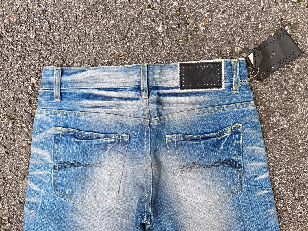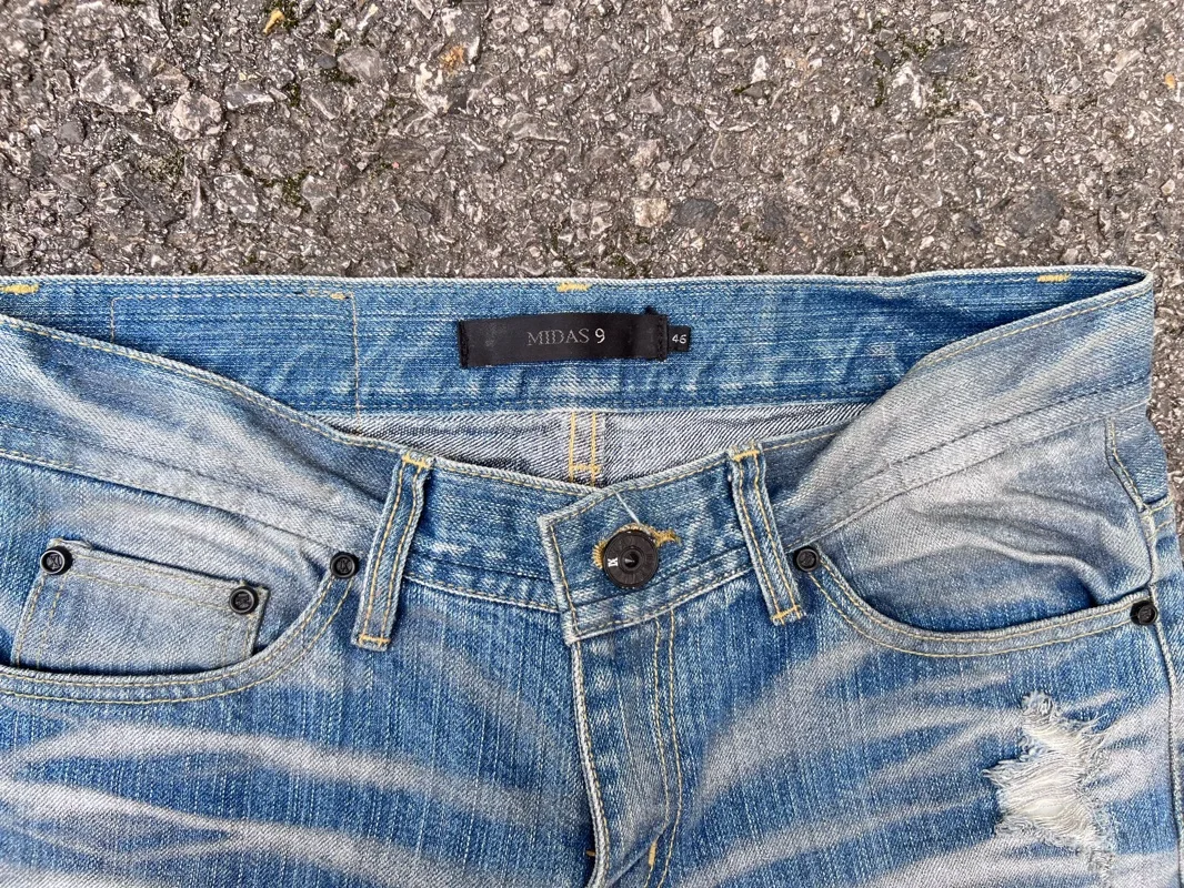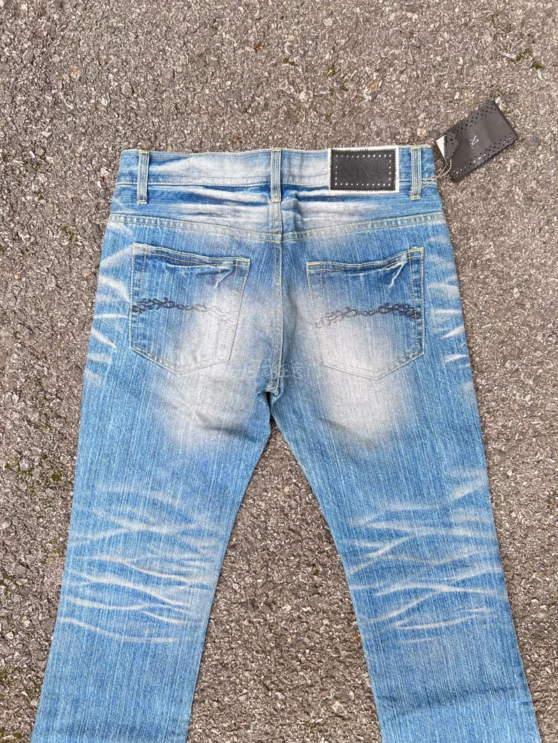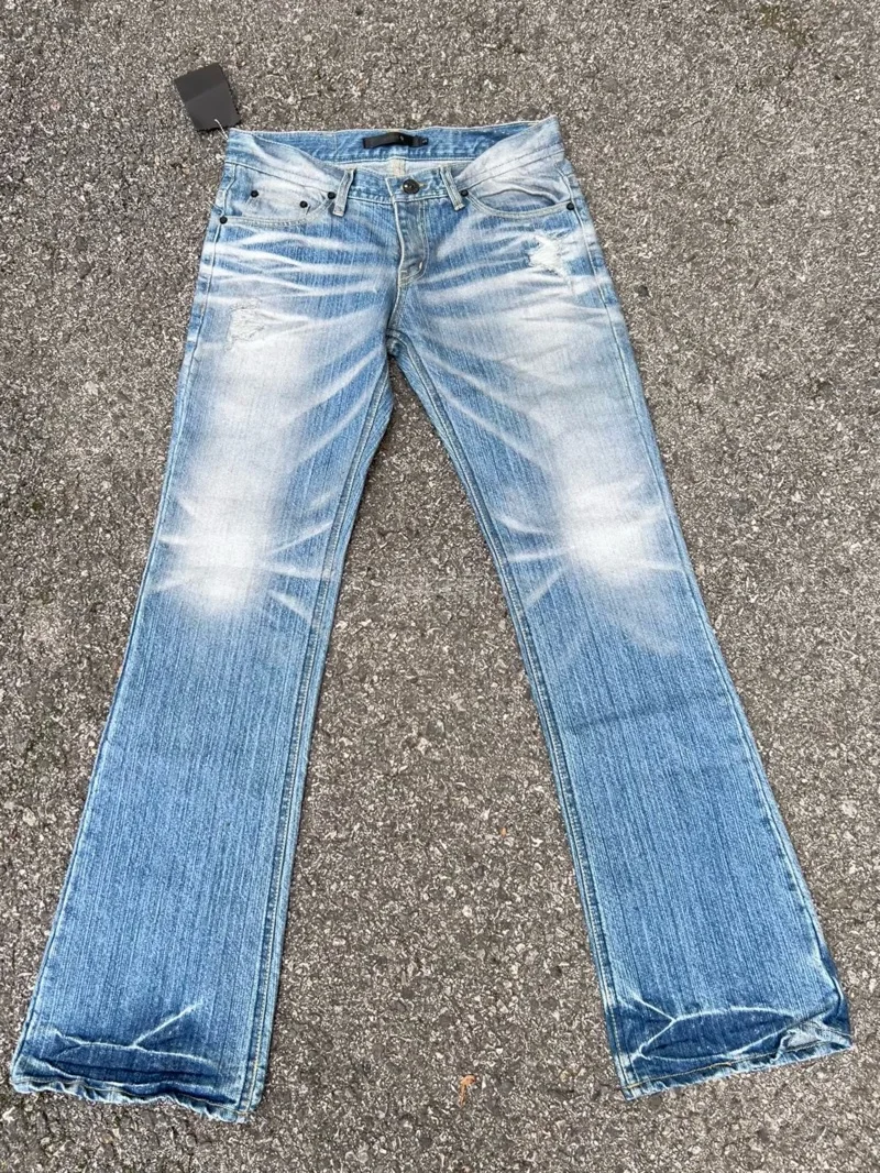 穿着舒适,用途广泛。 简约风格,带有做旧日和破损效果,时尚又帅气。 一直妥善保管,未曾穿过,但整体状态应该不错。 请务必理解,这毕竟是一件经由他人之手的复古单品后再行购买。尺码46 M码,标签标注 总长 约105厘米 腰围 约37厘米 裤裆长约19.5厘米 裤长 约84厘米 裤脚宽度 约21厘米
