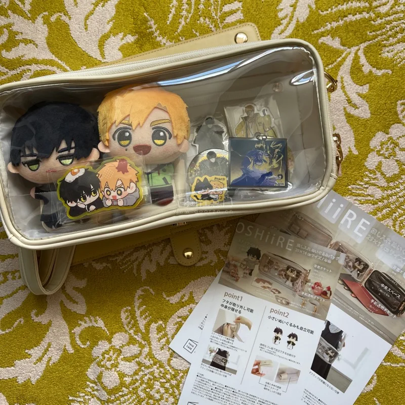 推し入れ ぬいぐるみバッグ 29 × 14cm サイズ フラップ 選べる9色 隠せる 痛バ 痛バッグ 推し活 バッグ ショルダー ポーチ クリア 透明 推し ぬい ぬいぐるみ 収納 おしゃれ シンプル 横長 4体 小さめ ショルダーバッグ 推し活グッズアイボリー;イエロー