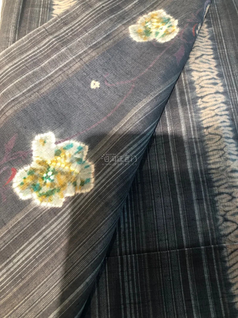 这件绞染紬的和服特别柔软,绞的枫叶生动活泼,再加上先染后织的工艺,很费时费力,叠加的工艺复杂,感谢店主分享