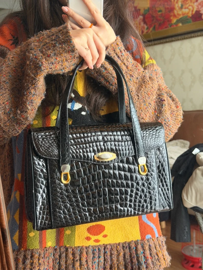 ハンドバッグ ✳️ イタリア製 本皮アリゲーター 美品 N4有些许损伤或污渍