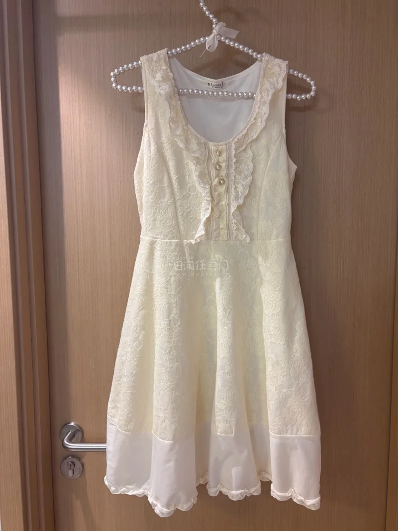 【早い者勝ちセール!】アクシーズファム レース ノースリーブワンピース ホワイト系 フリル二手;物流保障;有些许损伤或污渍