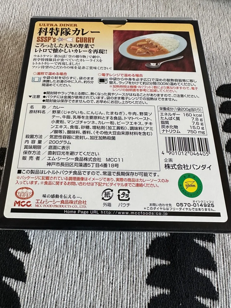 バンダイ キャラ食 ウルトラマン 科特隊カレー 1/1 ベータカプセル入り