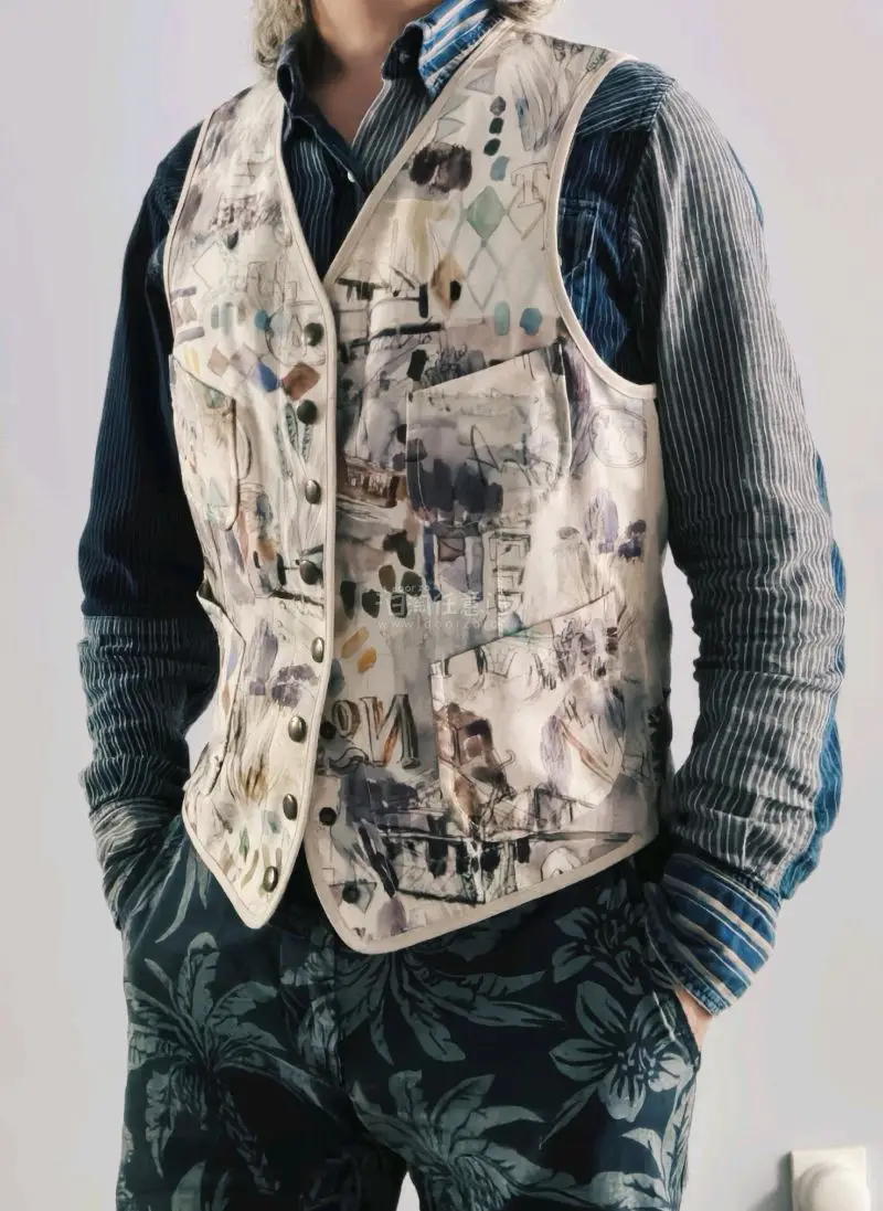 这次收到的三件真的是太心动了,经典的美产三星101J版型比传统的更好看,上身效果无敌,水洗效果太棒了。拼接丹宁衬衫做工细腻,配色好看。最满意的PS全麻水彩抽象印花马甲,太美了,难得看到一件一眼入魂的衣服,这次得偿所愿了。总体来说这次都很满意,挖煤姬的效率也是杠杠的,包装很用心,时效也是OK的,继续关注