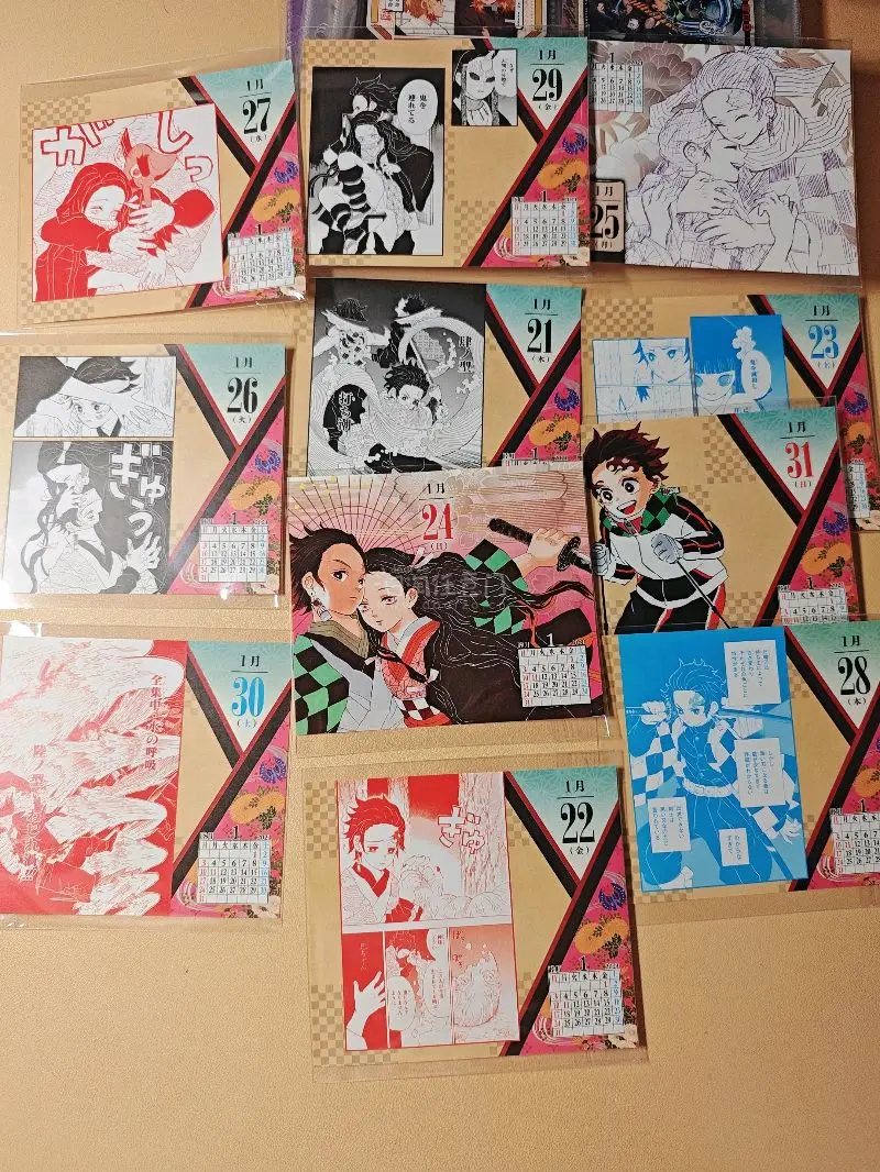 这次切煤切了一些鬼灭之刃20特的明信片,以及铁盒日历,不得不说还得是原画风美貌哇,东西都包装的很好,程度很新,感谢卖家感谢挖煤姬