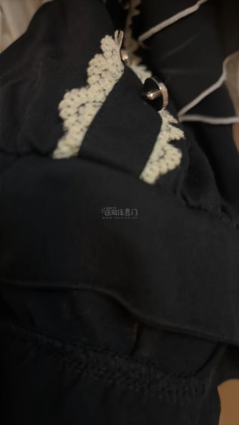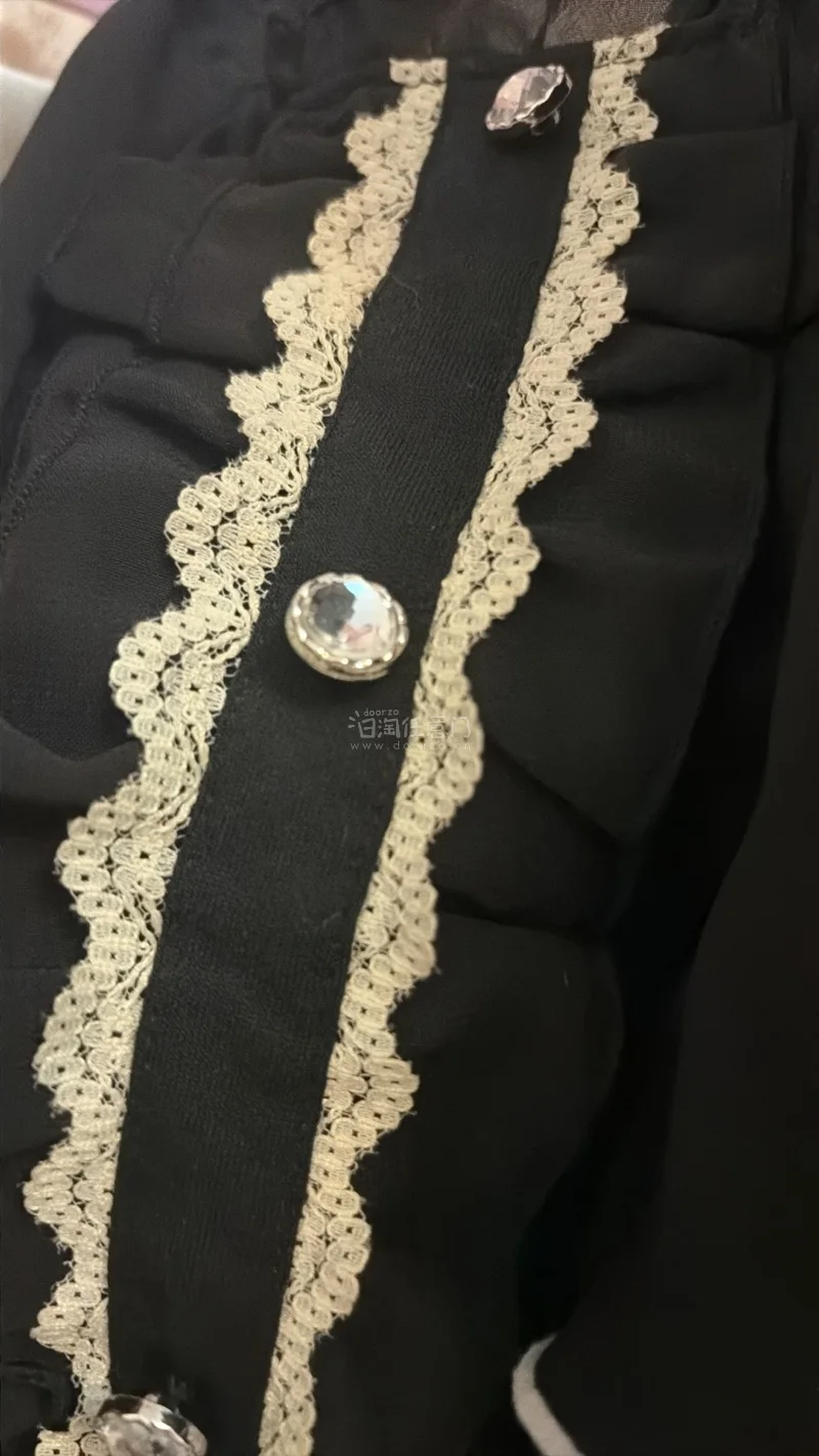 这件黑底蕾丝上衣太绝了!方领+荷叶飞袖超藏肉,蕾丝花边+精致纽扣复古感拉满✨ 面料轻薄透气,显瘦又显气质,通勤约会都能穿。质感在线不廉价,性价比拉满,闭眼入不踩雷,已经安利给闺蜜啦!